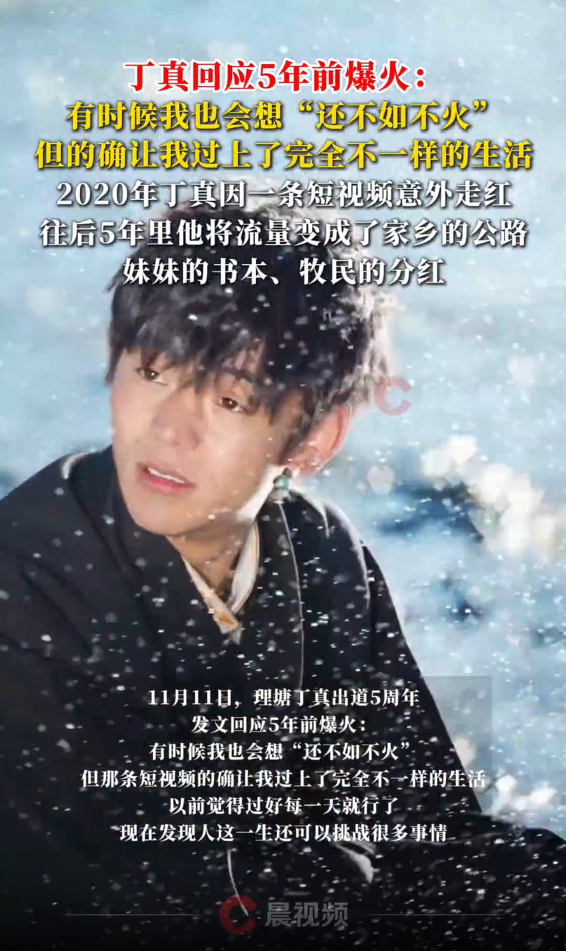 丁真回应爆火五年,生活巨变与给更多人带来幸运的愿景 丁真回应五年前爆火经历,表示有时会怀疑是否应该走红,但如今生活发生了翻天覆地的变化,他无法解释为何如此幸运,但希望能为更多人带来好运,他珍惜当下生活,感恩机会,继续前行,摘要字数在100-200字之间。...