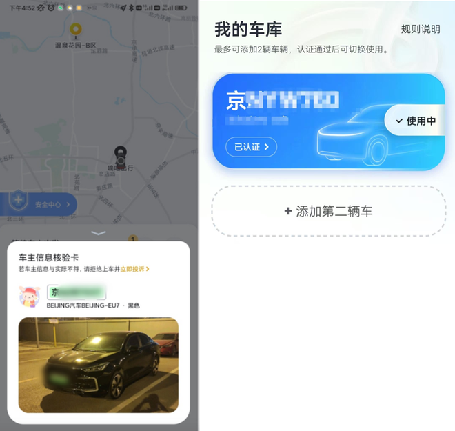 乘客上车前点击查看【车主信息核验卡】,确认车辆与订单显示一致,若车主正在人脸识别,请耐心等待识别通过后再上车,如遇“人车不符”情况,请拒绝合乘。