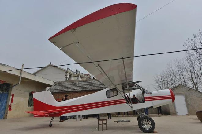 据封面新闻报道,这架飞机高约1.8米,宽约1.2米,是唐正兴从四川广安一“民间牛人”手上买回来的二手飞机,平时停在篮球场旁的一间废弃厂房里。