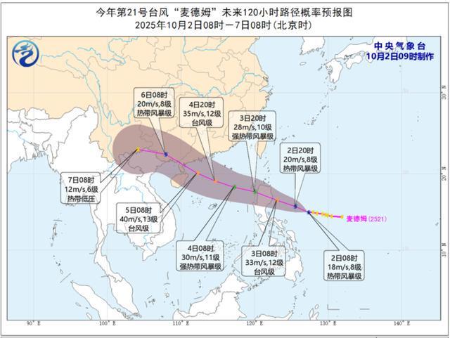 气象专家提醒,台风“麦德姆”将于国庆假期后半段给我国华南地区及南海带来明显风雨影响,公众需持续关注最新预报预警信息,提前做好相关防御措施;台风影响前后要远离海边,并将室外的物品收回室内或加以固定,影响时段不要外出、尽量远离窗户,影响后要注意饮食、用水安全。