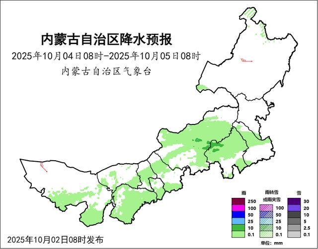 04日08时至05日08时,西部偏南和偏东、中部大部、东南部大部和东北部偏北和偏西地区多云,有小雨或雨夹雪,其中,锡林郭勒盟中部、赤峰市西北部有中雨,局地有大雨;西部偏西北、东部偏北地区4、5级短时6、7级西北风或偏西风;中部偏东、东部大部地区气温下降4到6度,中部偏东北、东部偏东和偏南地区气温下降6到8℃,局地气温下降8℃以上,中部偏东北、东部偏北地区有霜冻或轻霜冻。