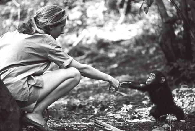 珍·古道尔的坚持不懈,让她得到了猩猩的信任。(图/截自纪录片《珍》)
