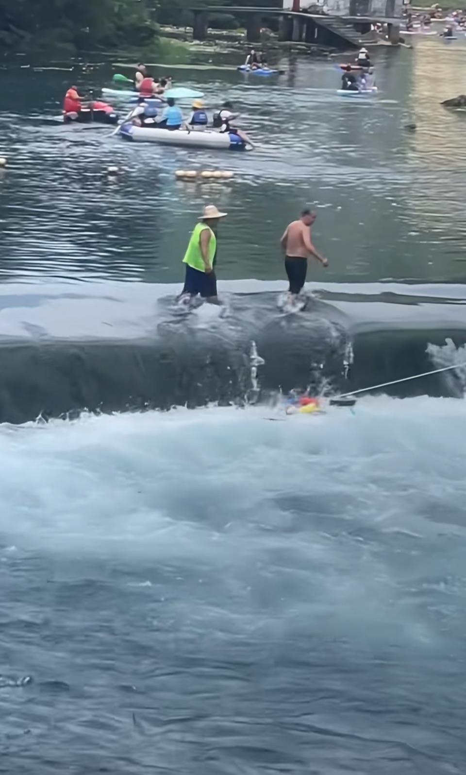 吴女士呼吁当地政府重视景区安全问题:“现在是九顿天窗客流高峰期,可能有人和我一样,觉得会游泳、穿了救生衣就没关系,冒险往水坝方向划。”她回忆,事发水域没有任何安全防护措施,也未配备专业救援团队,此次能获救全靠附近热心村民自发救援。从网友发布的视频可见,事发时滚水坝上游不远处仍有不少人在划桨板。