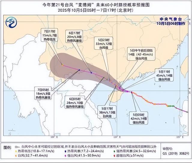 今年第21号台风“麦德姆”今天(10月5日)将登陆琼粤一带沿海,广东、海南、广西等地部分地区今明天陆续进入强风雨影响核心时段,部分地区有大暴雨,局地特大暴雨。