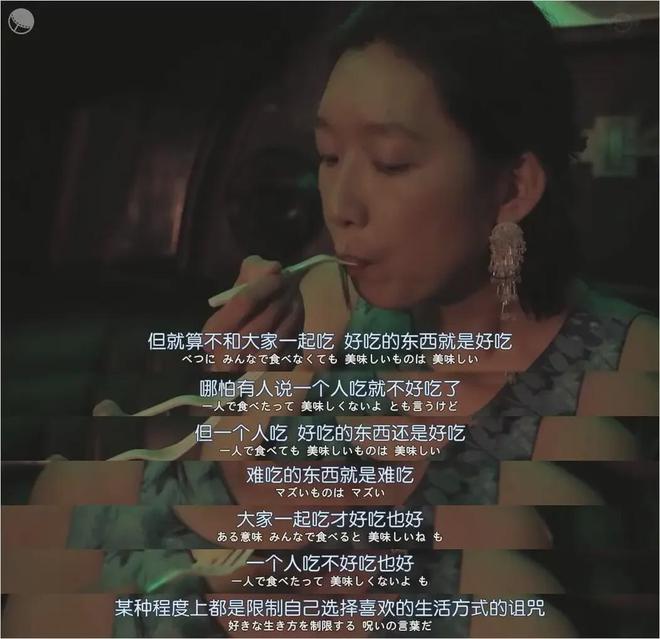 “不被时间和社会所束缚,幸福地填饱肚子,短时间内变得随心所欲,变得自由,不被谁打扰,毫不费神地吃东西的这种孤独行为,是现代人都平等地拥有的最高治愈。”