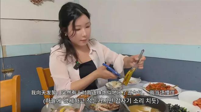 忍无可忍的你掏出手机和老板确认进店时间,抗议自己坐下来才不到20分钟。老板索性倒打一耙,说只点了2万韩元(约100人民币)的餐食算什么,快点吃完,然后离开这里。被气到手抖、流泪、无法进食的你,最后还是选择提前结账离开,并在事后把相关视频上传至社交平台,点击率破百万人次。