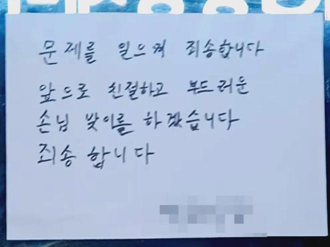 事后店家在门口张贴了用A4纸手写的道歉信。(图 /JoongAng)