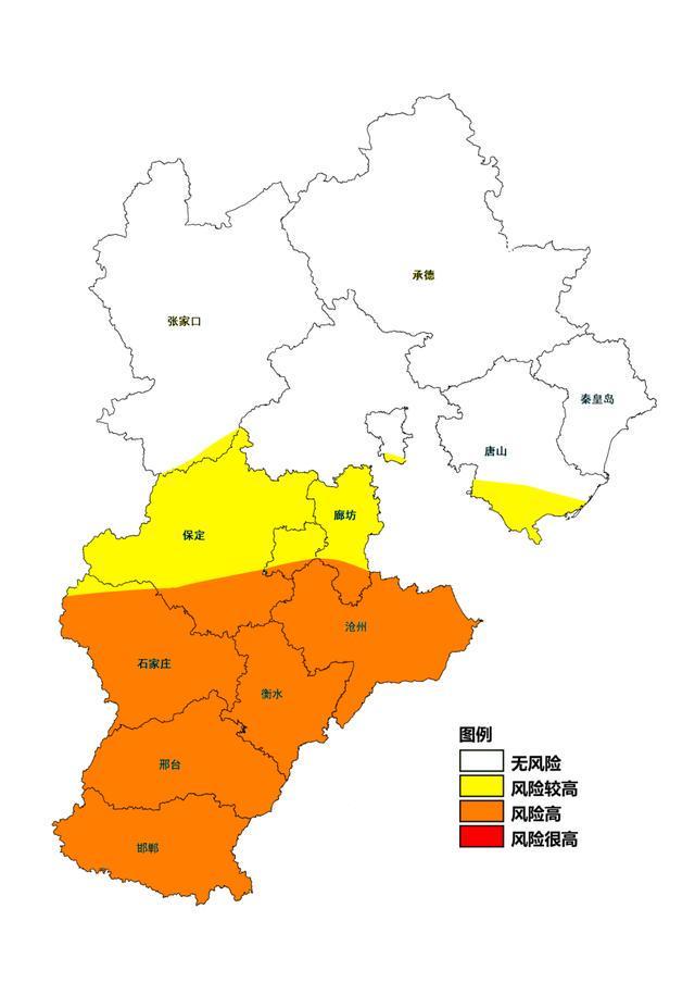 预计10月10-12日,保定中北部、廊坊中部、唐山西南部连阴雨和农田渍涝风险较高,保定东南部、廊坊南部、石家庄、沧州、衡水、邢台、邯郸风险高,将一定程度上延缓秋收作物收获和冬小麦播种进度,同时影响秋收作物晾晒。建议上述地区避雨抢收,采取通风存储、烘干等措施,降低发芽霉变风险;及时排涝降渍,腾茬整地,适时秋播。