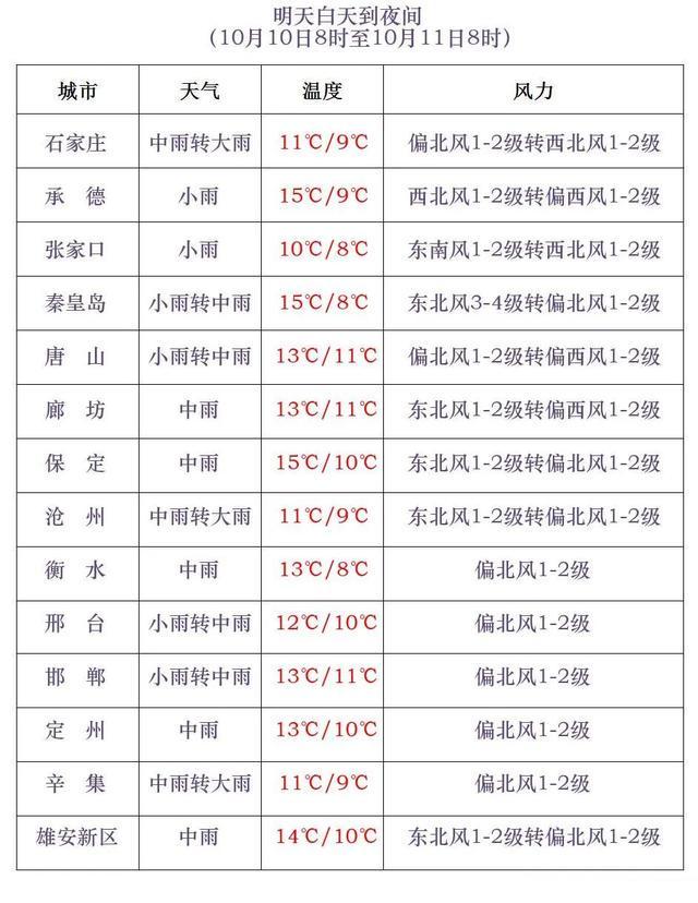 明天夜间到11日,全省阴,保定、廊坊及以南地区有中雨到大雨,个别地点有暴雨,其他大部分地区有小雨或零星小雨。