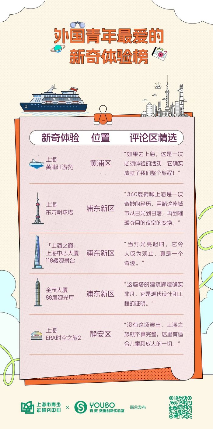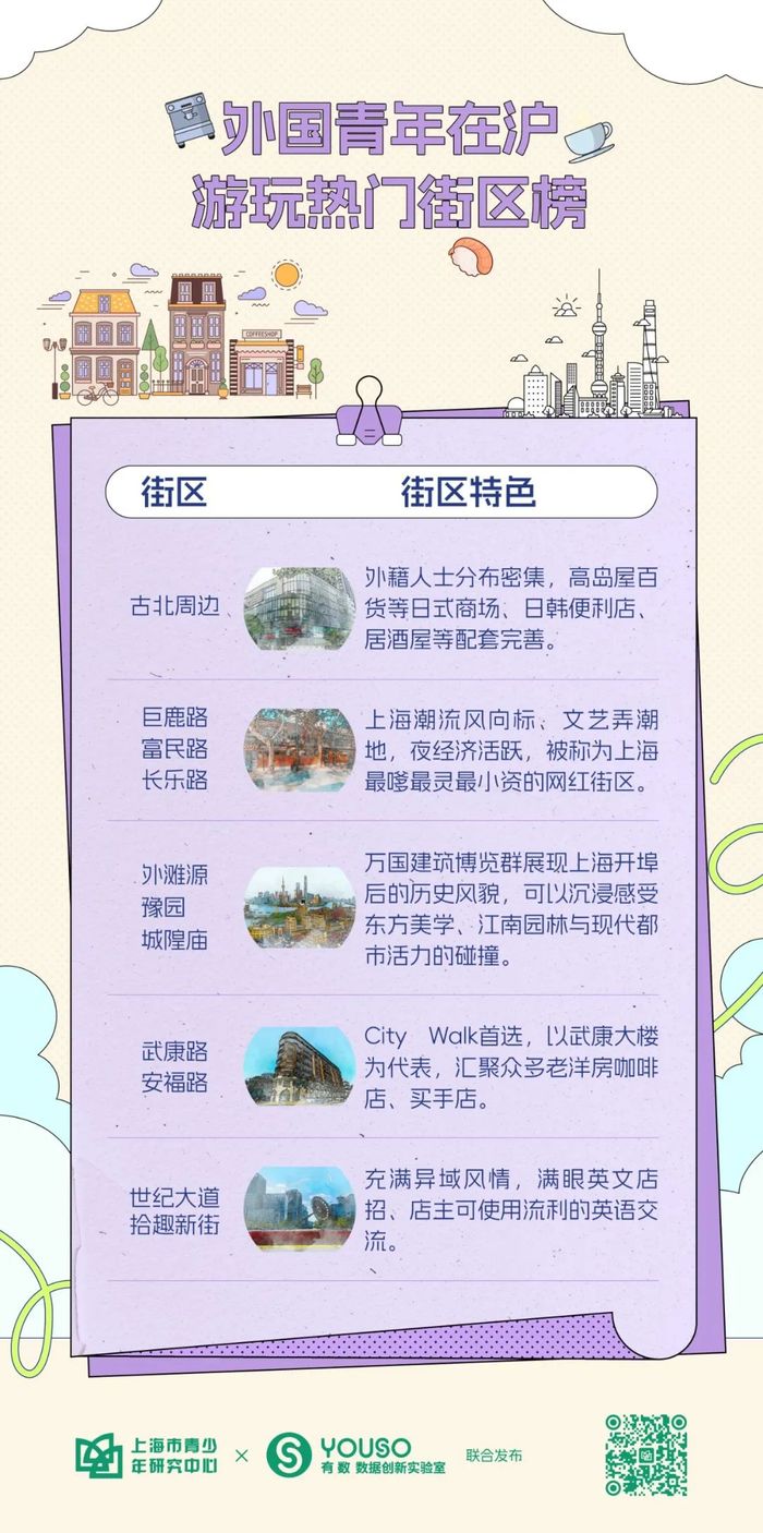上海市青少年研究中心及旗下有数数据创新实验室开展外国青年来沪消费趋势专题研究,运用研究中心长期调研数据、携程平台消费大数据,以及主要社交媒体平台、境外人士使用的主流旅行预订平台评论数据,发布《2025外国青年游上海文旅消费报告》,推出上海国际青年乐活榜单。