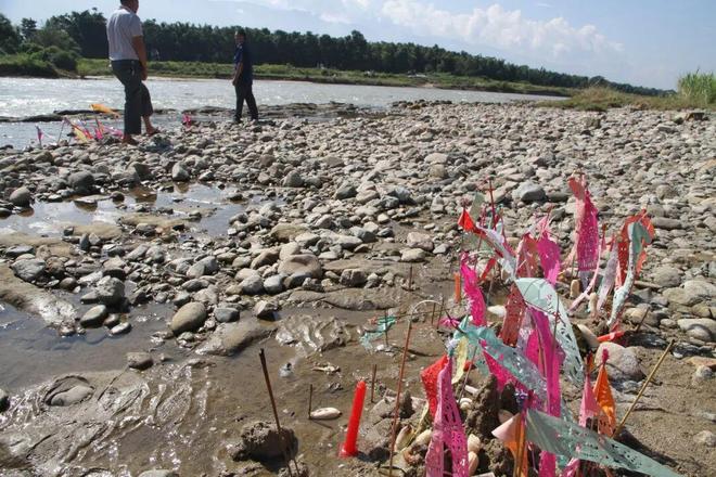 2018年,云南盈江蛮胆老寨。江边的简易祭坛,流水将带走一切邪秽。(图/邓启耀 摄)