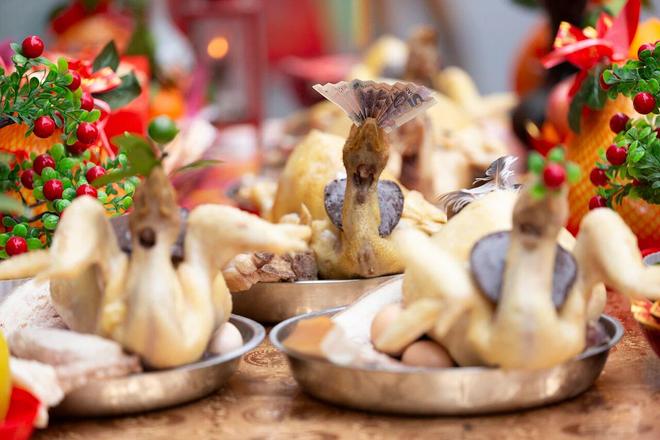 2025年2月17日,吴川吴阳镇状元故里霞街年例,贡品鸡口中被放入纸币。(图/视觉中国)