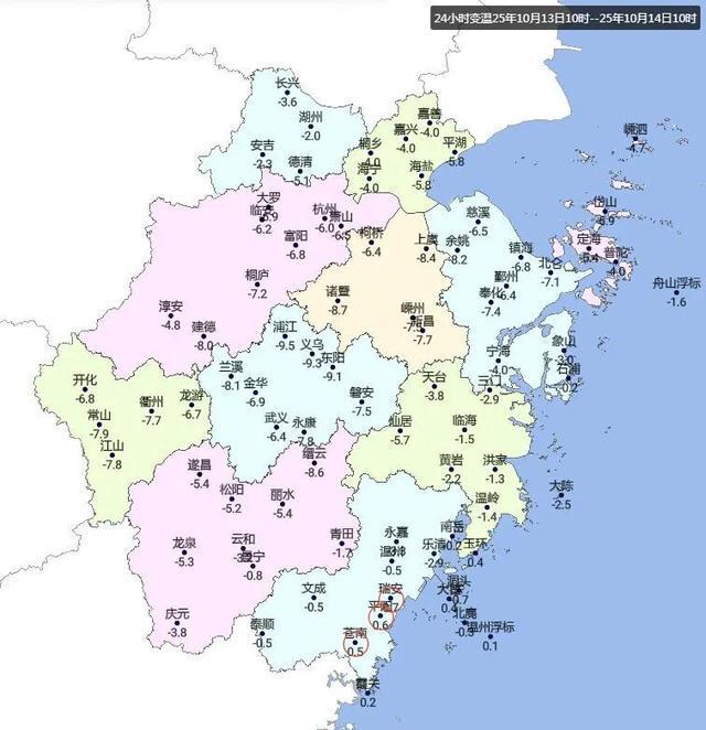 受弱冷空气影响,今天我省各地都出现了不同程度的降温,金华地区落差明显,10时浦江相对昨日同一时刻下降了9.5℃。在这样的降温下,今天上午全省大部气温依旧停留在“2”字头,最凉的湖州10时气温仅19.6℃。