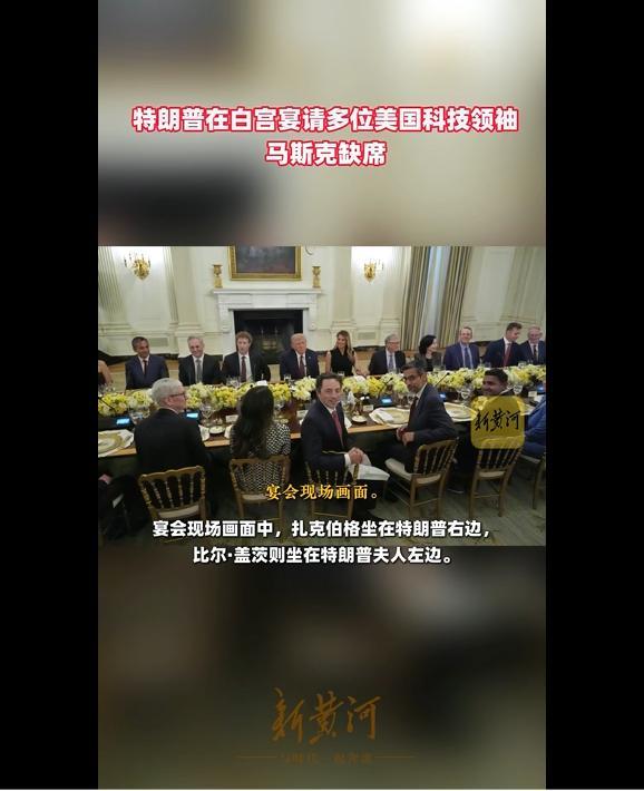 特朗普白宫宴请科技巨头,比尔·盖茨与扎克伯格陪伴特朗普夫妇,马斯克缺席盛会