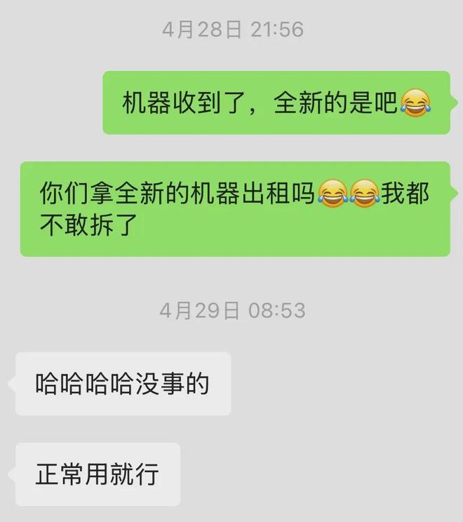 “有一次,商家给我寄来了一台全新的、没拆封的设备,我都有点担心”,她拍了全流程的视频发给商家,得到对方“可以正常使用”的回答,才敢拆开包装。