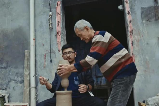 许昌巷子里的非遗传承,徒弟向师傅学习钧瓷制作。(图/《许昌不慌》)
