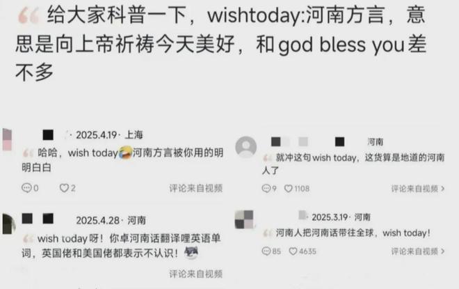河南方言“wish today”成互联网热梗,火出海内外,引热议。(图/社交媒体截图)