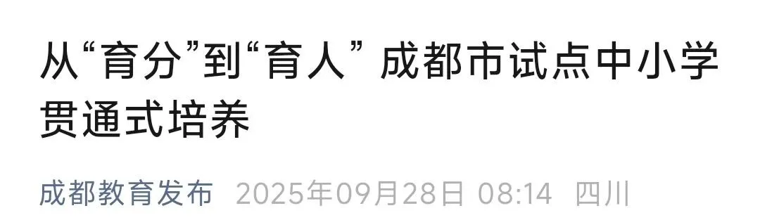 01上海近日,上海市教委印发《上海市普通高中高质量发展实施方案》,其中包括试点长学制贯通培养模式。成都市教育局近期也公布了一项改革——自2025年起,探索开展小-初-高12年贯通式培养改革试点,首批参与试点的学校共8所。