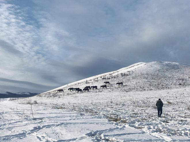 在这种焦虑里,我看到了恩和的秋天。十月,马被放回草原,当地人去找马,我也跟着一起去。然后雪来了,还是去找马。