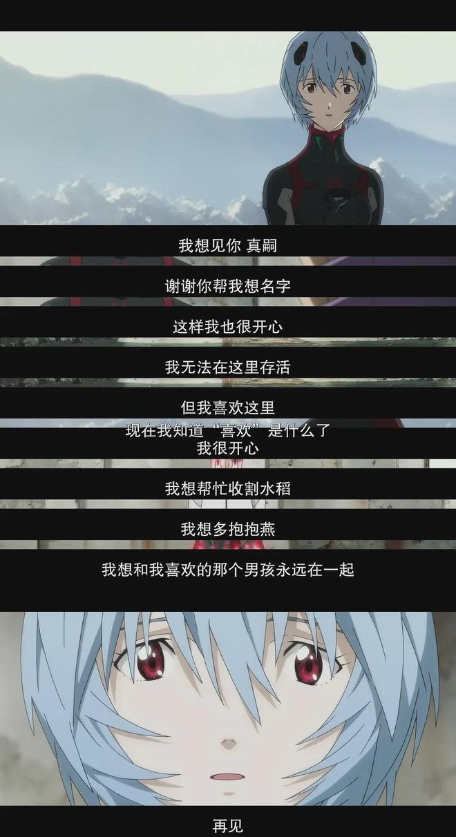 于是我们看到,最终章中,明日香终于能够坦率地说出“我曾经喜欢过你”,而不要求对方的回应;绫波丽表达了感谢,而不期待更多的连接;碇真嗣学会了道别,而不执着于永恒。这些角色在保持自我的同时,也向他人敞开了心扉。这种“重复着亲近和疏远,从而找到能让彼此都不会受伤害的距离”的方式,或许正是庵野秀明和EVA历经多年探索后给出的最终答案。