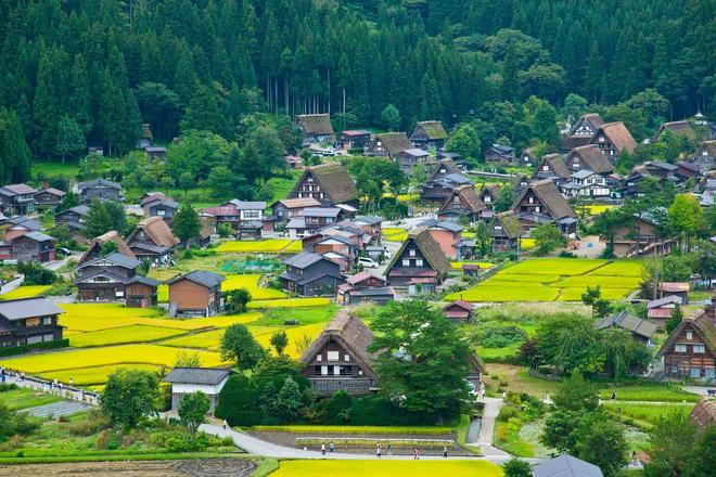 群山环绕着传统的合掌造村落。(图/视觉中国)