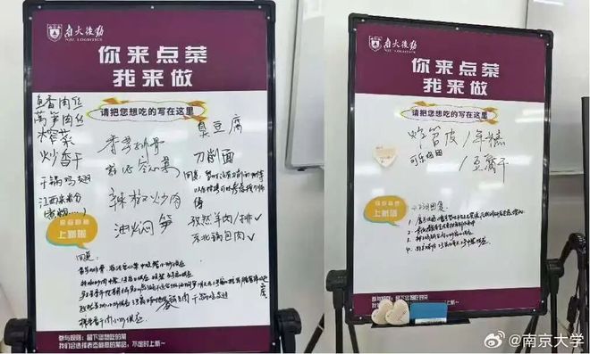 南大食堂算是勇于进步的良心食堂。看“南大后勤”公众号,你会发现他们分别在2025年4月、5月、10月搞过三期“您来点菜我来做”的免费试吃活动,并收集菜品和口味的改进意见,“心愿菜单”瞬间就被热情“攻陷”,西湖醋鱼、油焖笋、酸汤肥牛、爆炒鱿鱼等成了爆款菜。据说,“您来点菜我来做”免费试吃活动后续将升级为常态化活动,每月在各个校区轮流开展一次。