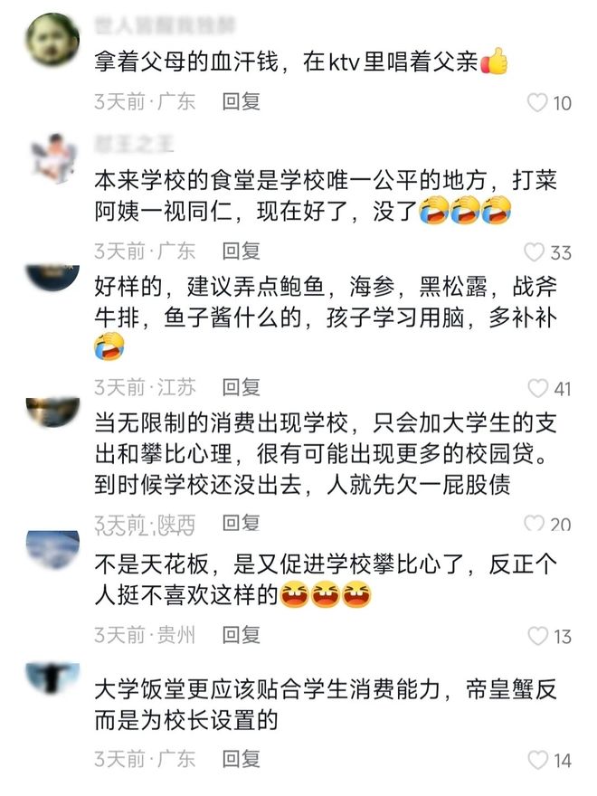 有人忧心“攀比”。但攀比的根源在于心,而不在于物。没有帝王蟹,攀比也会存在于手机、鞋服等任何地方。把社会风气问题简单归咎于一只帝王蟹身上,反倒是回避了教育中更核心的引导责任。大学的职责,是培养学生内心的丰盈与自信,让他们不被物欲所役,而不是打造一个隔绝现实世界的“无菌温室”。