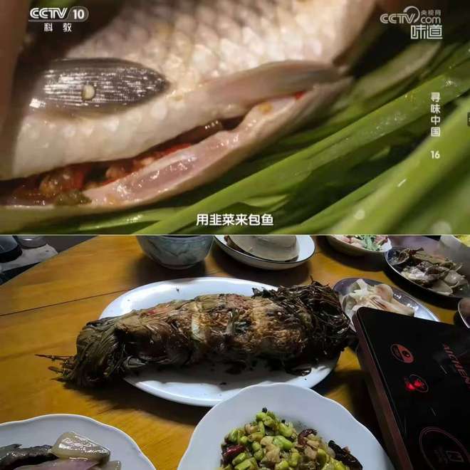 鱼包韭菜看似其貌不扬,口味却值得一试。(图/《寻味中国》、木木)
