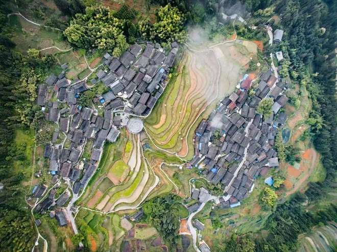 三都县怎雷村,村寨依山傍水。(图/视觉中国)