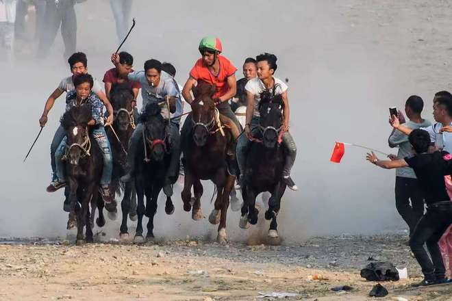 骑手在通过这些狭窄的马道时,一方面要确保自己不被挤下来,另一方面也要想办法采取合理的冲撞方式把别的骑手挤下马,以期尽快通过,最先到达终点。虽说时至今日,随着施工条件的不断改善,端坡马道既宽且直,但“挤马”作为端坡赛马的鲜明特征,仍然被保留下来。