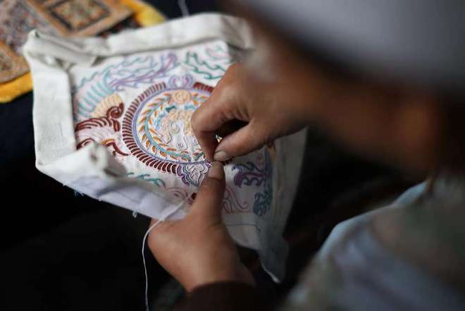 水族手工艺人在制作马尾绣。(图/视觉中国)