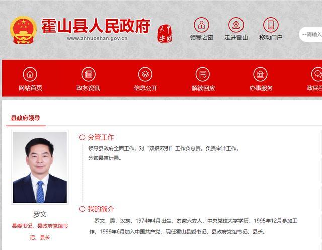 据霍山县政府网“领导之窗”近日更新显示,罗文已任霍山县委书记。