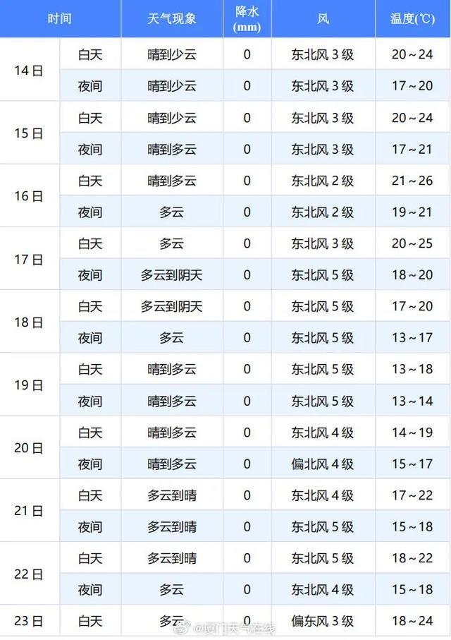 厦门以多云到晴为主
