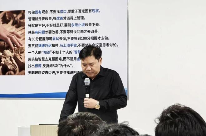 会议伊始,生产一厂总经理、柔性精益智造圈圈长杜建新发表开场致辞。他深刻阐释了 推行精益生产对公司长远发展的重要意义,系统梳理了前三季度精益生产的推进成果,精准剖析了当前存在的问题,并详细解读第四季度的发展方向,明确目标路径,为本次启动大会奠定了务实且前瞻的基调。 杜总强调 ,柔性精益智造圈的每一位成员都是这场智造变革的核心力量,希望全体成员能将规划蓝图转化为实际行动,以柔性思维、精益实践、创新突破,携手共创下一季度的辉煌!