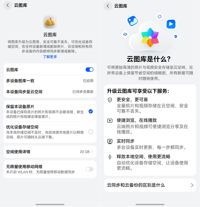 最妙的是它的“无感体验”,当我准备在三方平台调用云端照片时,发现即使本地是预览图,也能直接在App内调用云端的高清原图,无需我手动来回下载。这种“润物细无声”的衔接感,正是鸿蒙系统应用好用的精髓。