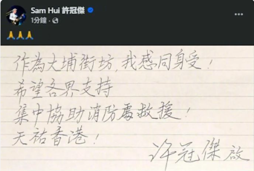 谢霆锋、佘诗曼、陈伟霆、钟欣潼、容祖儿等众多艺人发文祈祷“愿平安”。