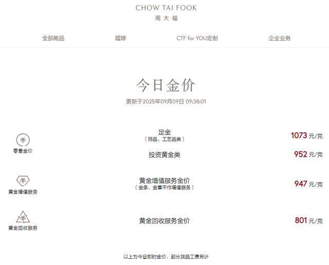 受此影响,部分国内金饰价格达到年内最高。中新经纬9月9日查询发现,周生生金饰价格为1081元/克,为今年以来最高,较前日上涨15元,10天涨近70元;老庙黄金为1073元/克,为年内最高,单日上涨11元;老凤祥为1073元,单日上涨10元;周大福为1073元,单日涨13元。