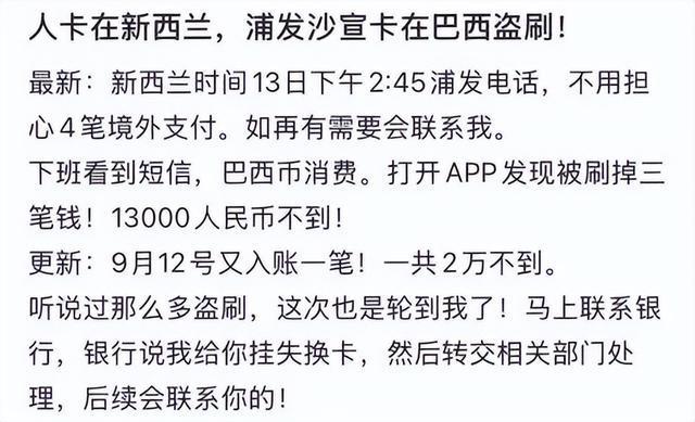 不少浦发银行万事达卡用户反映被盗刷