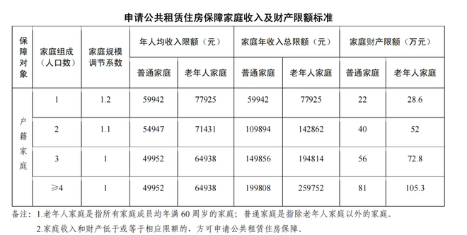 2025年申请广州市户籍家庭公租房的家庭收入及财产限额标准。(图/广州市政务服务网)