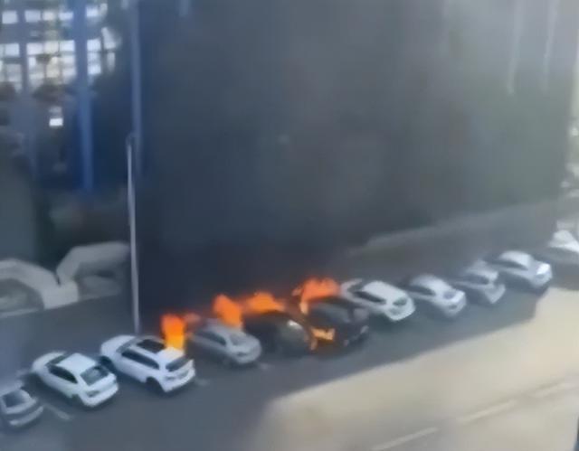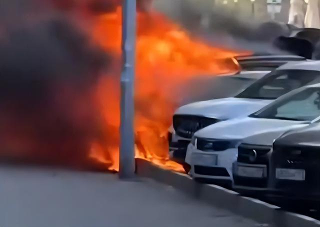 根据现场目击者称,有被击落的无人机坠落至路边车辆上并引发了火灾。