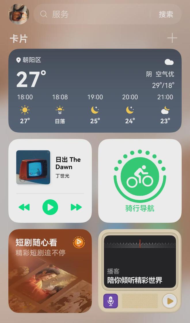 在负一屏的服务卡片模块,还能添加阅读、视频、音乐等卡片,通勤路上没听完的歌、没看完的电影、没读完的书都可以一键接续。我们也得以将碎片化时间整合成一件件可以长期、沉浸去做的事情。