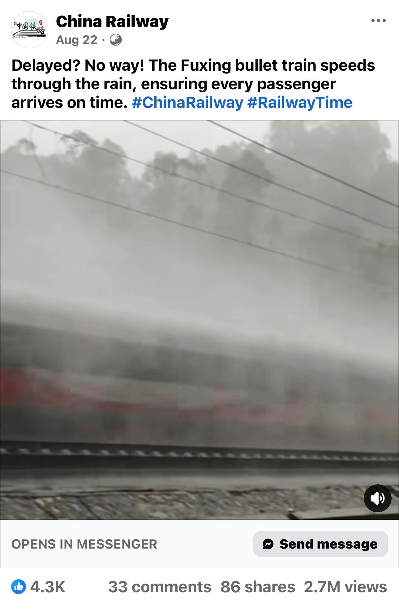 海外网友热议,复兴号雨中驰骋展现中国力量 复兴号火车在雨中赶路的画面走红网络,海外网友纷纷称赞这列火车和中国一样强大,这一画面展示了中国高铁的坚韧与力量,彰显了中国在交通领域的卓越成就,这一景象反映了中国的发展速度和实力,也展示了中国在国际上的影响力。...