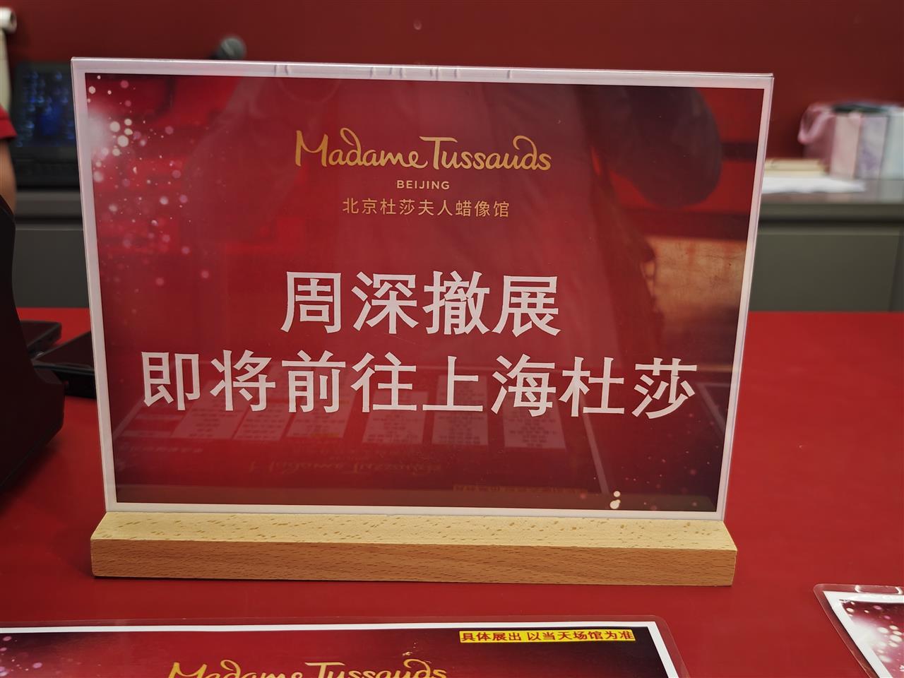 值得注意的是,歌手周深的蜡像已提前撤展,即将被送往上海杜莎夫人蜡像馆。周深蜡像于2023年7月25日在北京杜莎夫人蜡像馆揭幕。蜡像馆工作人员称,一直以来,周深的蜡像吸引众多歌迷前来打卡。去年年底,因蜡像广受欢迎,曾前往国内其他杜莎夫人蜡像馆巡展。今年9月4日至9月29日,周深的蜡像再次回到北京蜡像馆展览。9月29日,是周深的生日,也是蜡像展览的最后一天,有不少歌迷前来和蜡像“告别”。