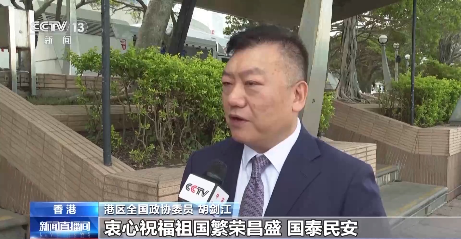 港区全国政协委员 胡剑江:这几天香港街头国旗飘扬,维港、铜锣湾游人络绎不绝,烟火气十足。大家喜迎国庆,特别振奋。值此佳节,我以香港商界人士与政协委员身份,衷心祝福祖国繁荣昌盛、国泰民安。
