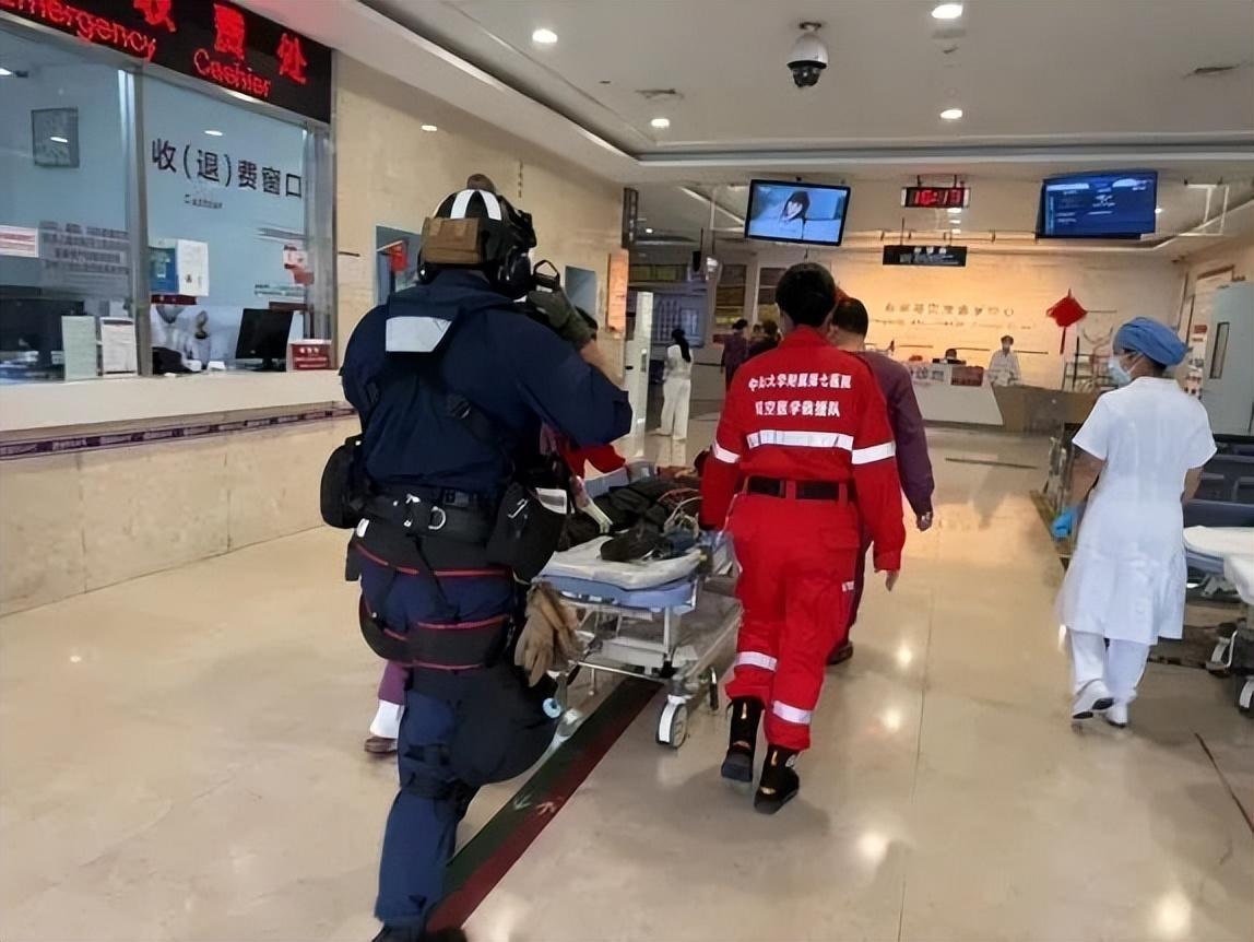 深圳市急救中心120指挥调度平台接到报警后,发现周围地理环境复杂,常规救护车无法到达,于是根据现场和患者情况迅速进行医疗研判,并紧急协调航空救援队,决定启动航空救援。整个救援过程紧凑有序,从患者进机舱到送达医院,仅用了10分钟。
