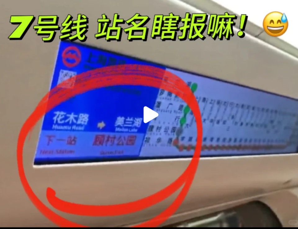 网友拍摄的视频显示,事件发生在7号线顾村公园站到祁华路方向。自动广播报错站台名,男乘客因没听到更正,错过了下车时间。