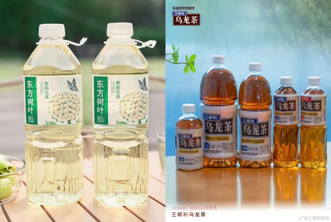 东方树叶茉莉花茶,三得利乌龙茶,图片来源:微博@东方树叶,微博@三得利饮料