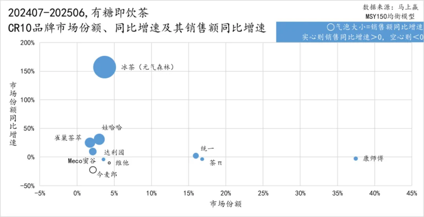 202407–202506,有糖即饮茶品牌市场格局,图片来源:马上赢