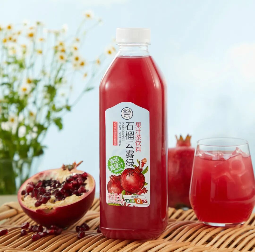 盒马的云雾绿茶系列,就在选择水果上有着独特的思路。团队会首先考虑水果的价值,选择石榴这种相对来说比较高价的水果,增加用户的体验感。