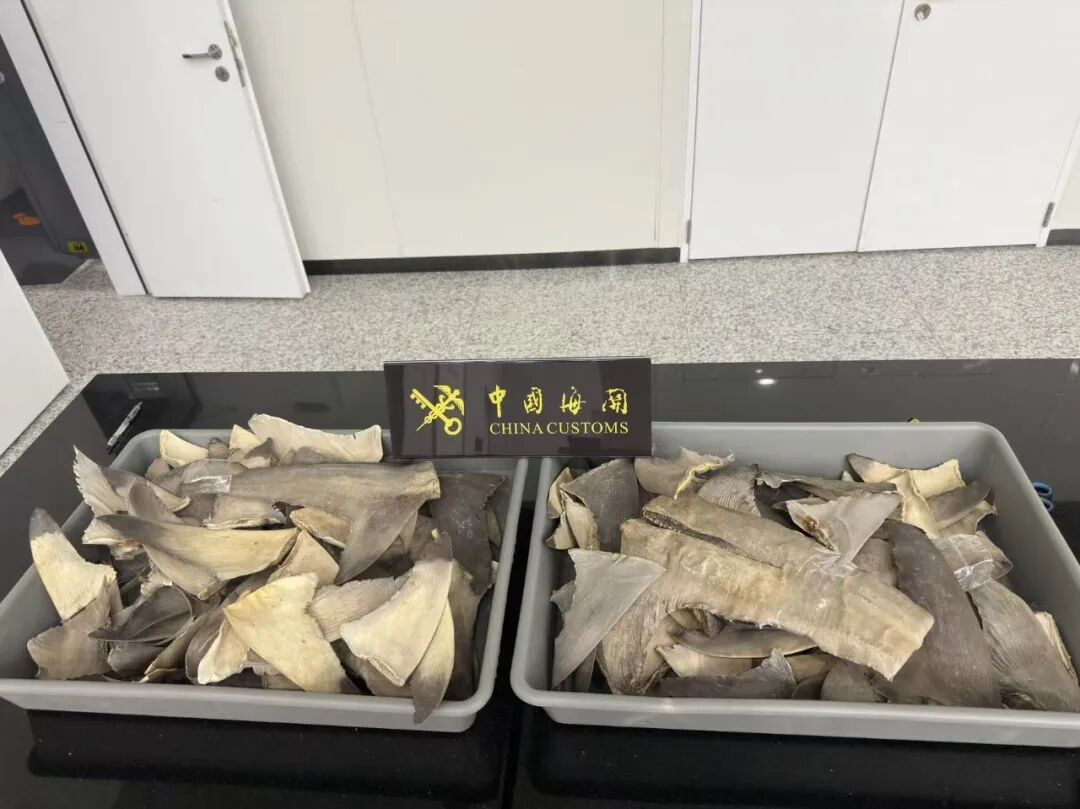9月25日,横琴海关关员对进境旅客监管时,发现一名经“绿色通道”通关的旅客行李物品机检图像异常。经开箱查验,关员在该旅客行李箱中查获疑似鲨鱼鱼翅160片,净重9.14千克。后经拱北海关技术中心鉴定,该批鲨鱼翅实际为钝吻真鲨、侧条真鲨、大鼻真鲨、阔口真鲨、高鳍真鲨,均被列入《濒危野生动植物种国际贸易公约》(CITES)附录Ⅱ。